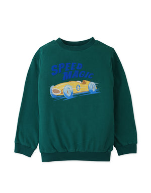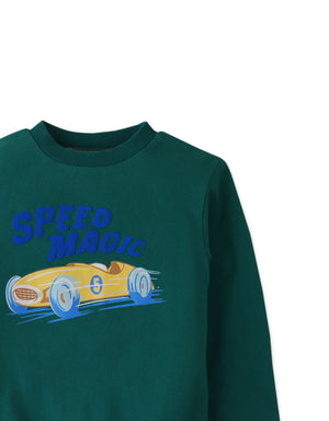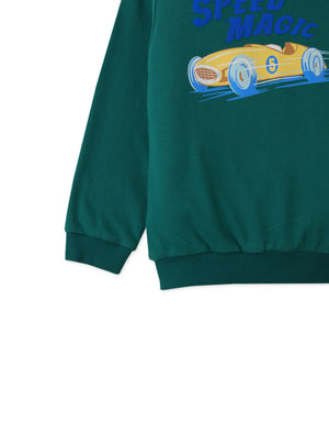 Upgrade your little one's outfit with this retro-inspired printed pullover in a lush green hue.