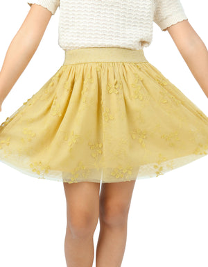 GIRLS ALL OVER EMBROIDERED TULLE SKIRT