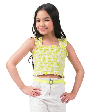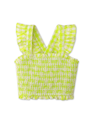 GIRLS GINGHAM SMOCKED OPEN-BACK TOP