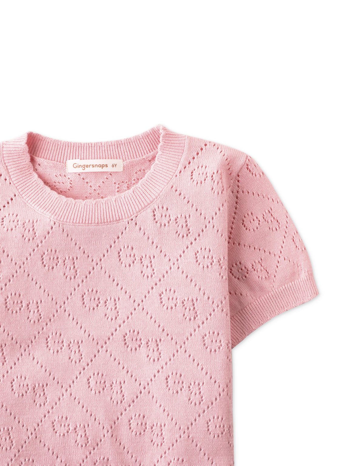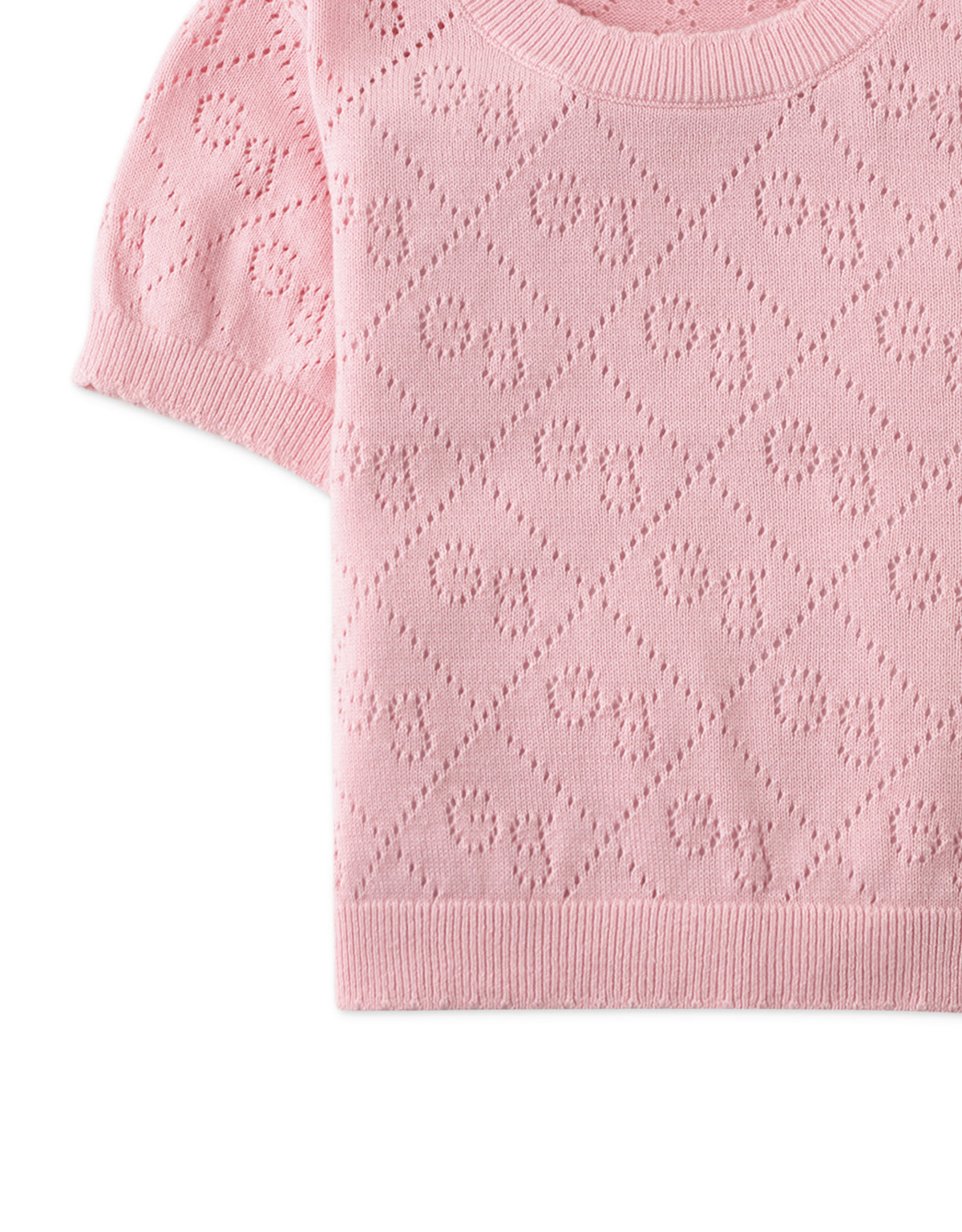 This knit pointelle blouse in baby pink brings elegance and charm to every outfit!