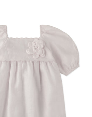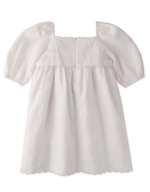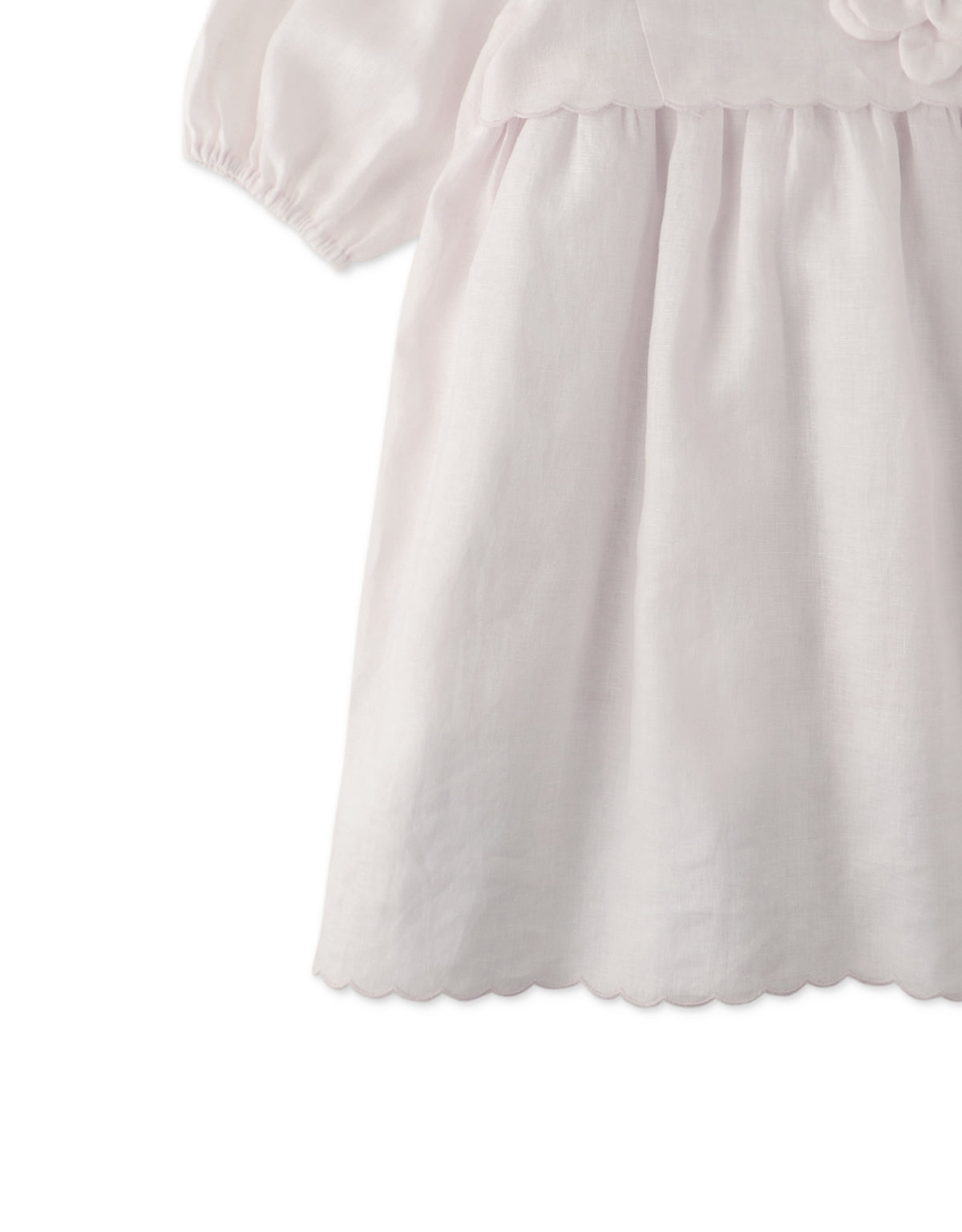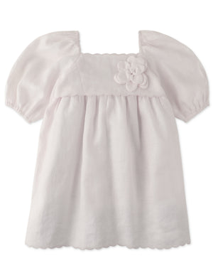 This adorable baby doll dress with scallop trims is crafted from quality linen, ensuring elegance with every twirl!