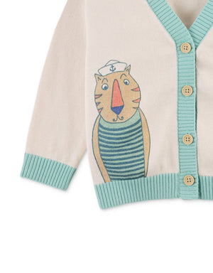 Sail into style with our Joaquin knitted cardigan, featuring a playful tiger motif that adds a dash of adventure to his wardrobe.