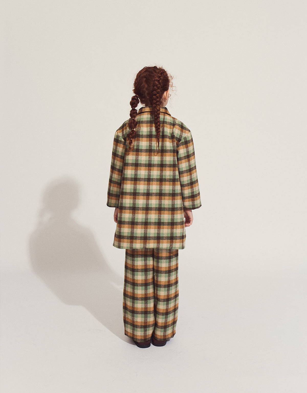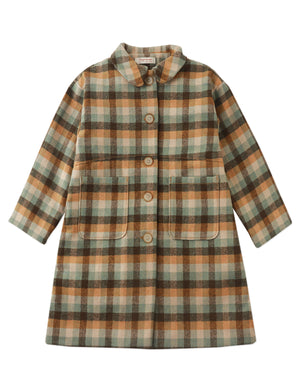 Gift your little one the Anora Long Coat in Timberline, a cozy plaid pattern with earthy tones, featuring a sweet Peter Pan collar and patch pockets for a charming and rustic addition to their wardrobe.