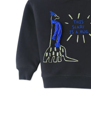 BABY AIDAN HOODED SWEATSHIRT GRAY WITH DINO PRINT AND YARN CORD ACCENT