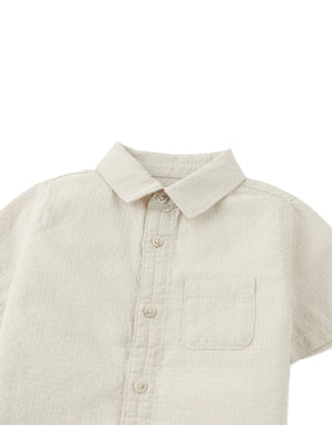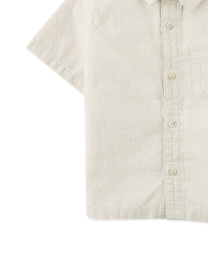 Outfit your little one in this beige short sleeve dobby shirt, featuring a bartacked placket that adds a touch of sophistication to their look.