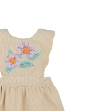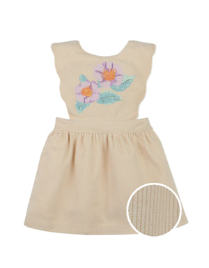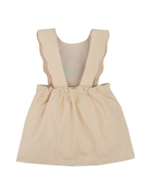 BABY ANNELIESE PINAFORE DRESS BEIGE WITH CROSS-STITCH AND SCALLOP EMBROIDERY DETAILS