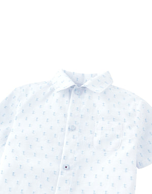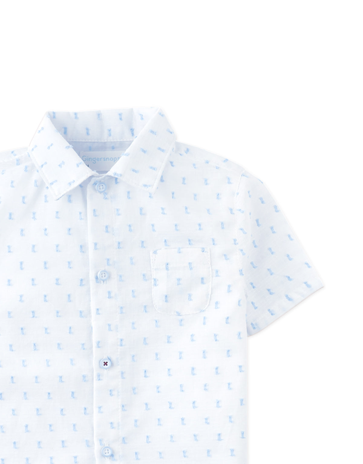Thoughtfully crafted in textured dobby, this white short sleeve shirt features subtle ant embroidery that lends a lighthearted touch to your little one’s polished wardrobe.