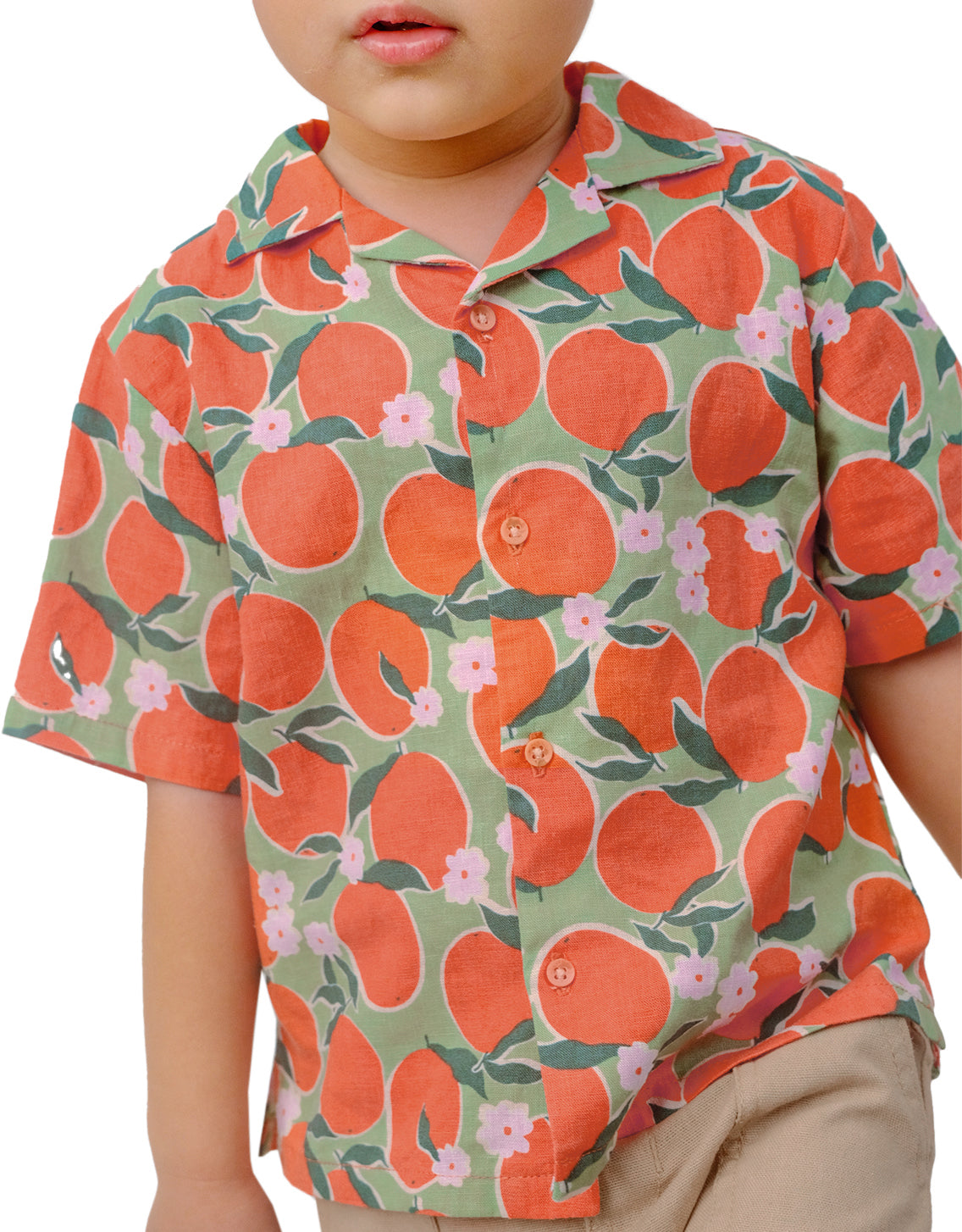 BABY BOYS BIG ORANGES PRINT SHORT SLEEVES SHIRT