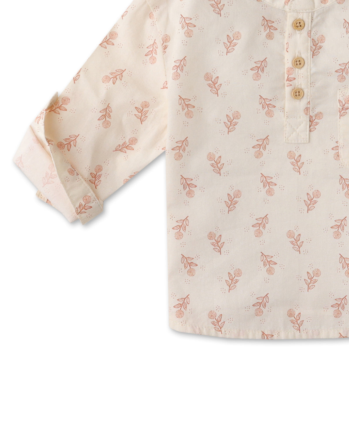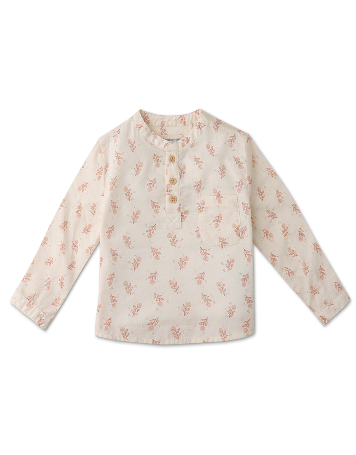 Play and explore in this poplin long-sleeved shirt, adorned with the cutest mandarin collar and a refreshing floral print!