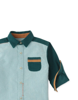 BABY BOYS COLOR BLOCK WITH FOX HEAD EMBRO SHIRT