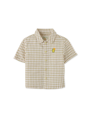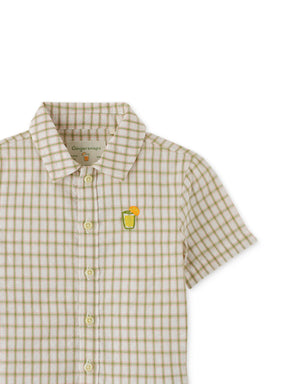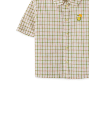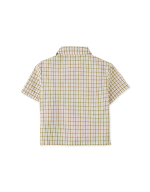 BABY BOYS CRUMPLED COTTON CHECKS SHORT SLEEVES SHIRT WITH EMBROIDERY