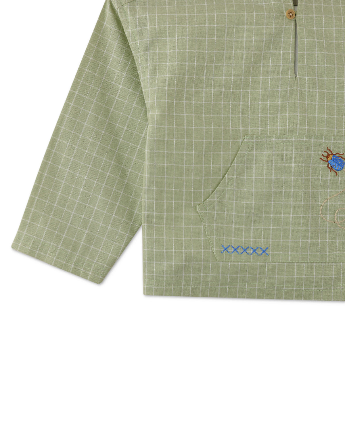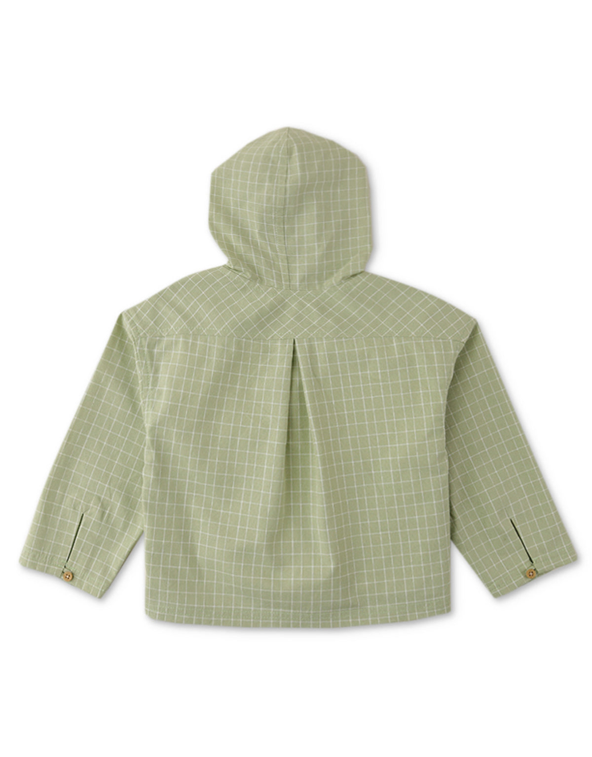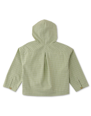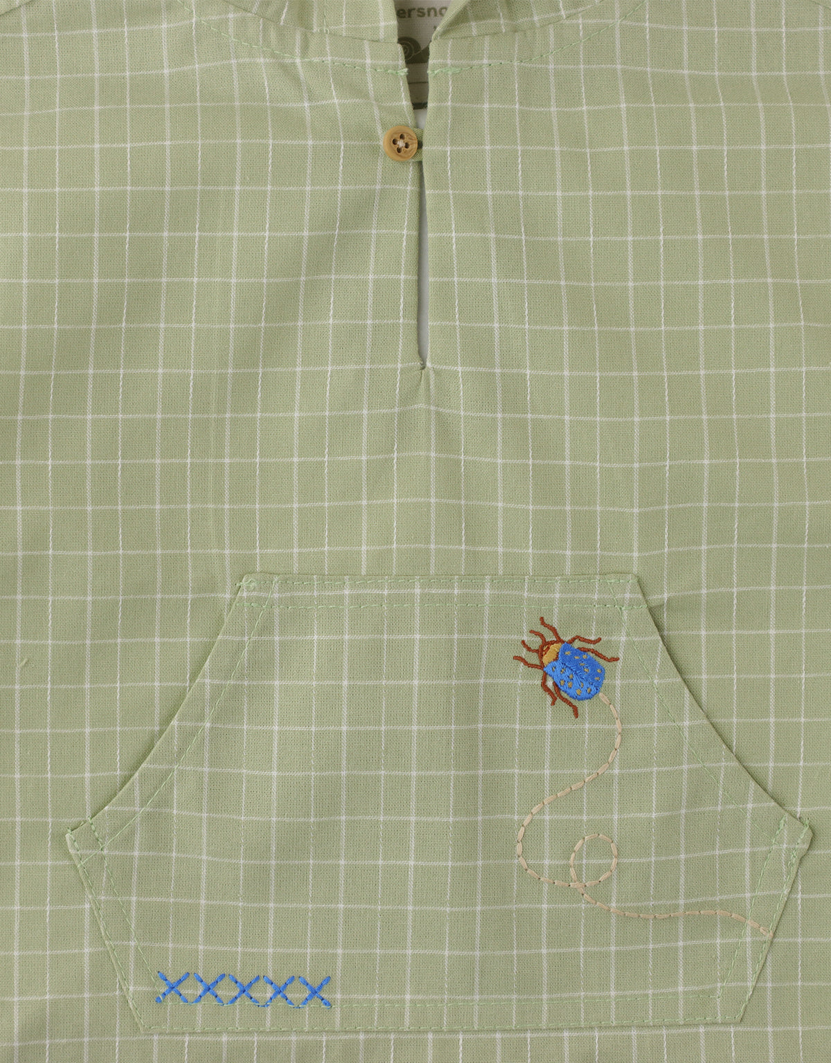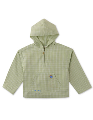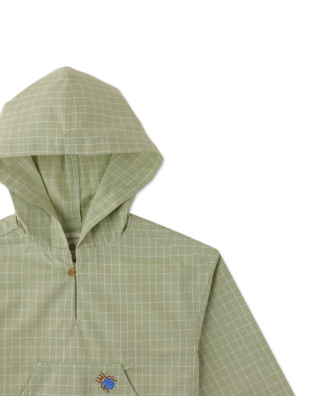 This hooded gingham pullover in green is one of the coziest outfits for all his adventures