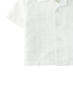BABY BOYS LACE AND LINEN HALF & HALF SHIRT