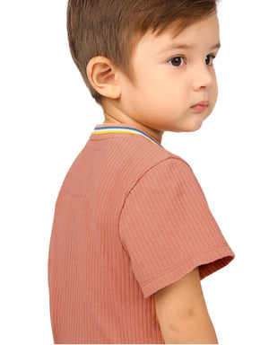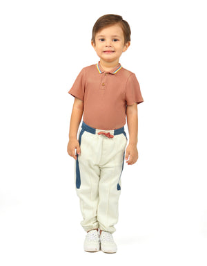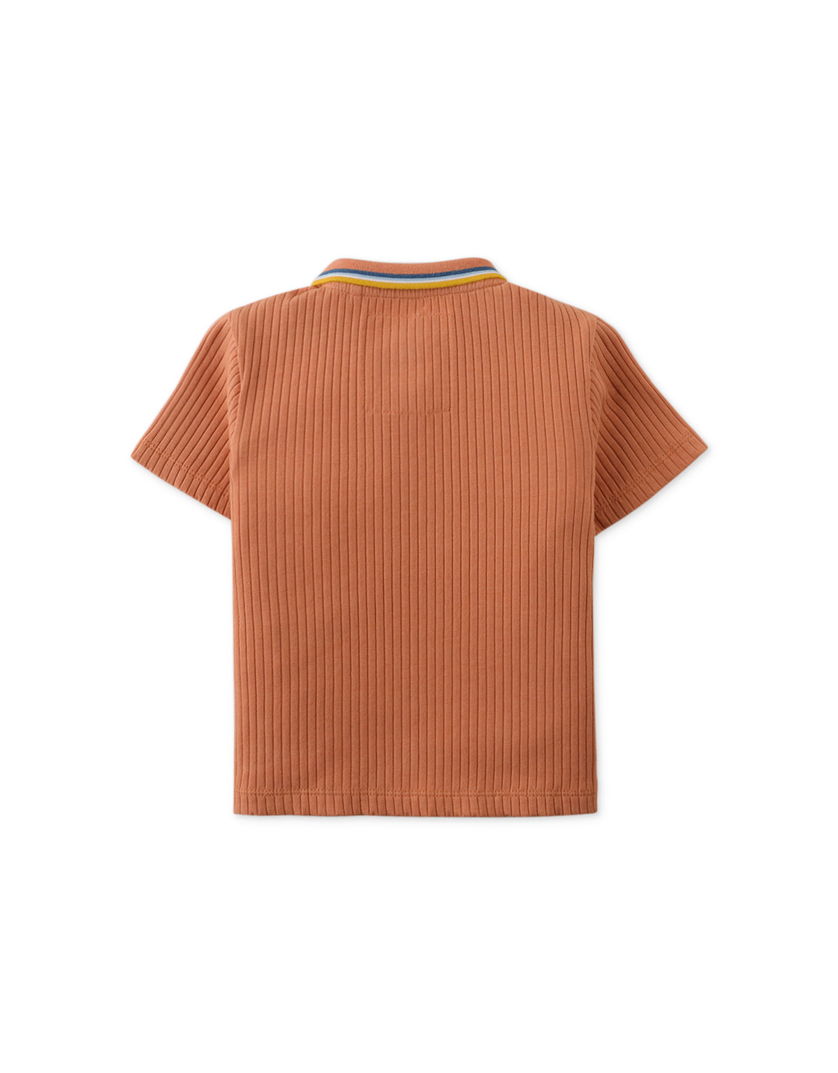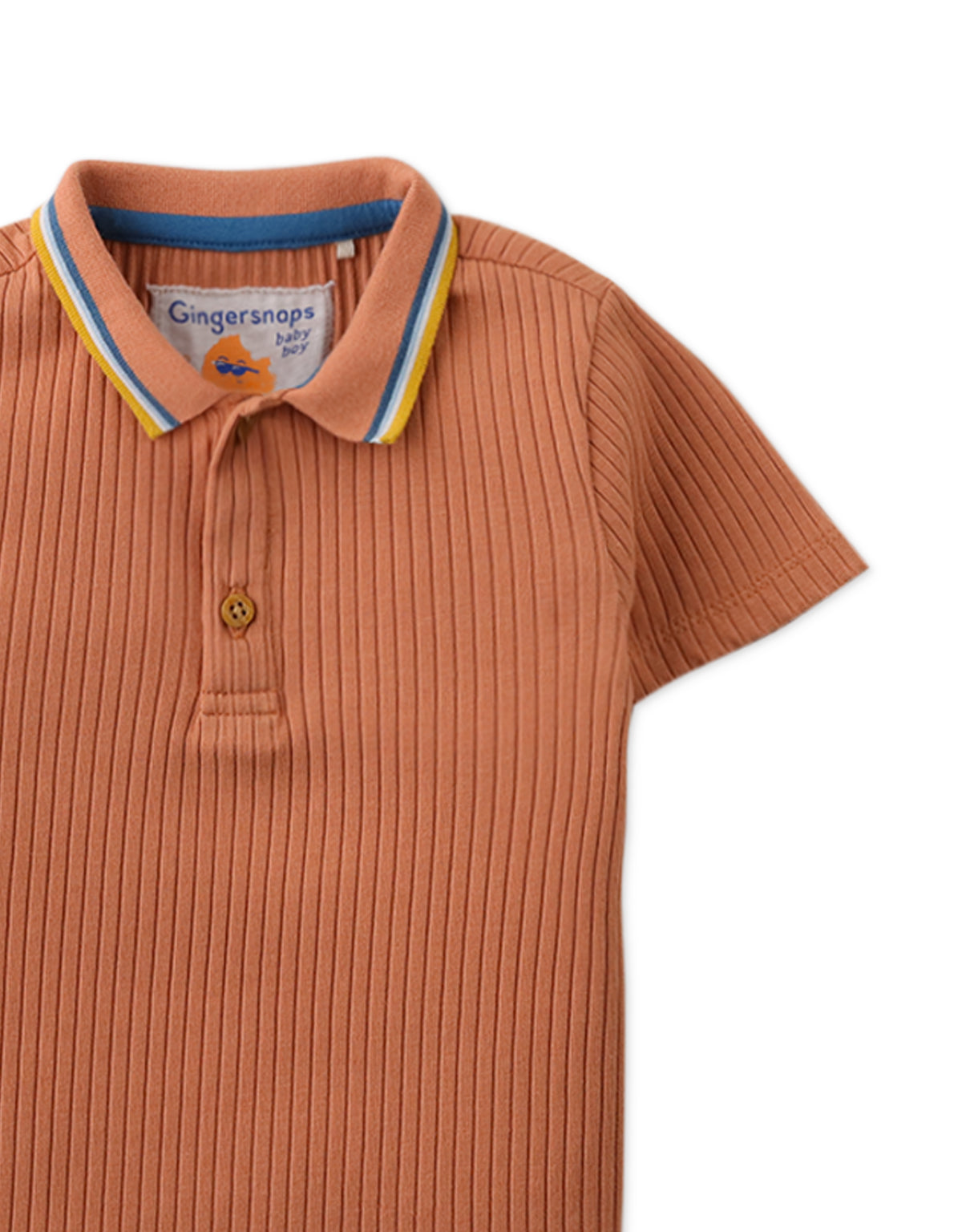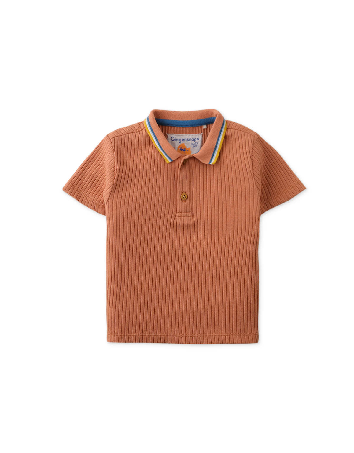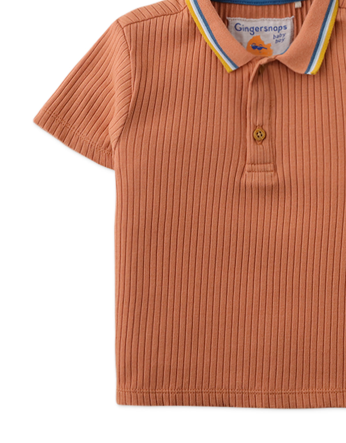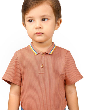 Your cutie pie will feel so fresh while looking so stylish in this brown polo shirt with stripey cuffs and collar.
