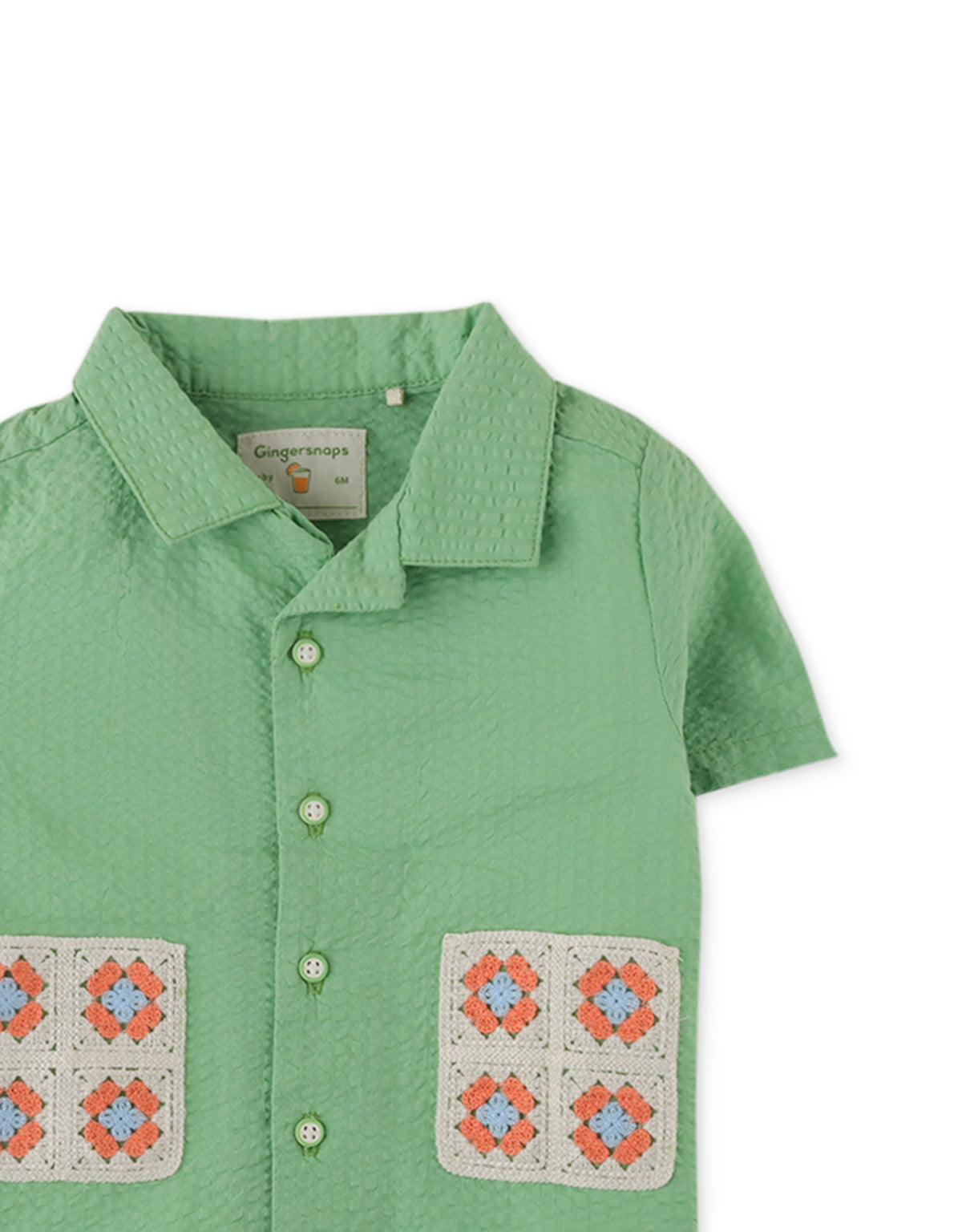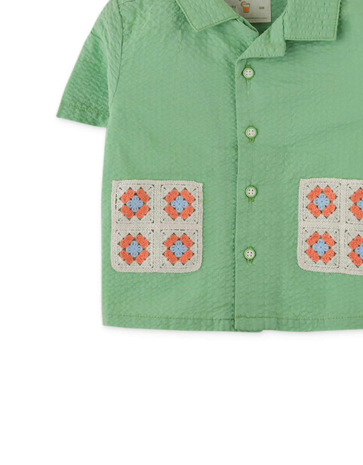 BABY BOYS SEERSUCKER SHORT SLEEVES SHIRT WITH CROCHET ON POCKETS