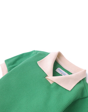 Infuse vibrant charm into your little one's wardrobe with our Lucas waffle polo in refreshing green, crafted for both comfort and style.