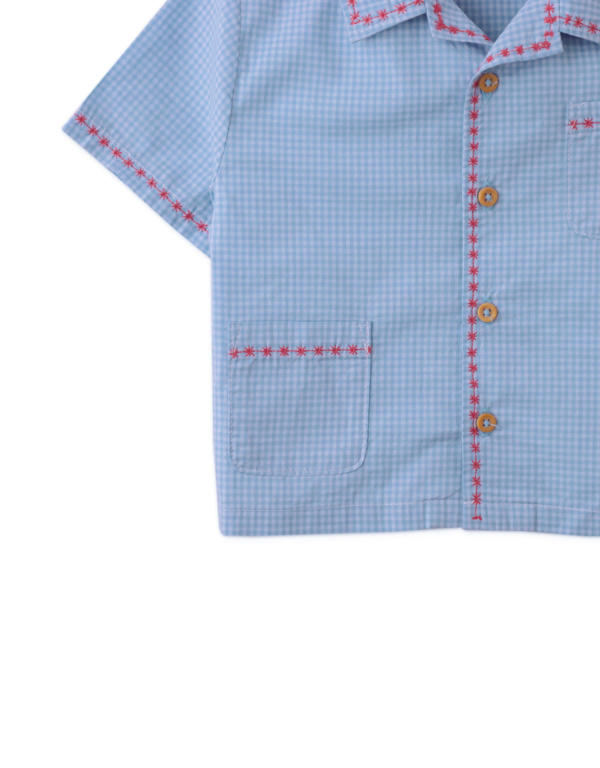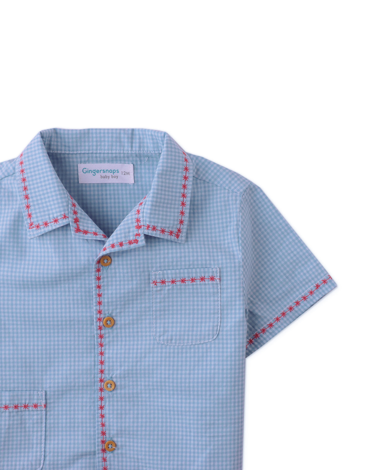 Dress your little gentleman in our soft Riley gingham shirt, meticulously embroidered for a touch of timeless charm.