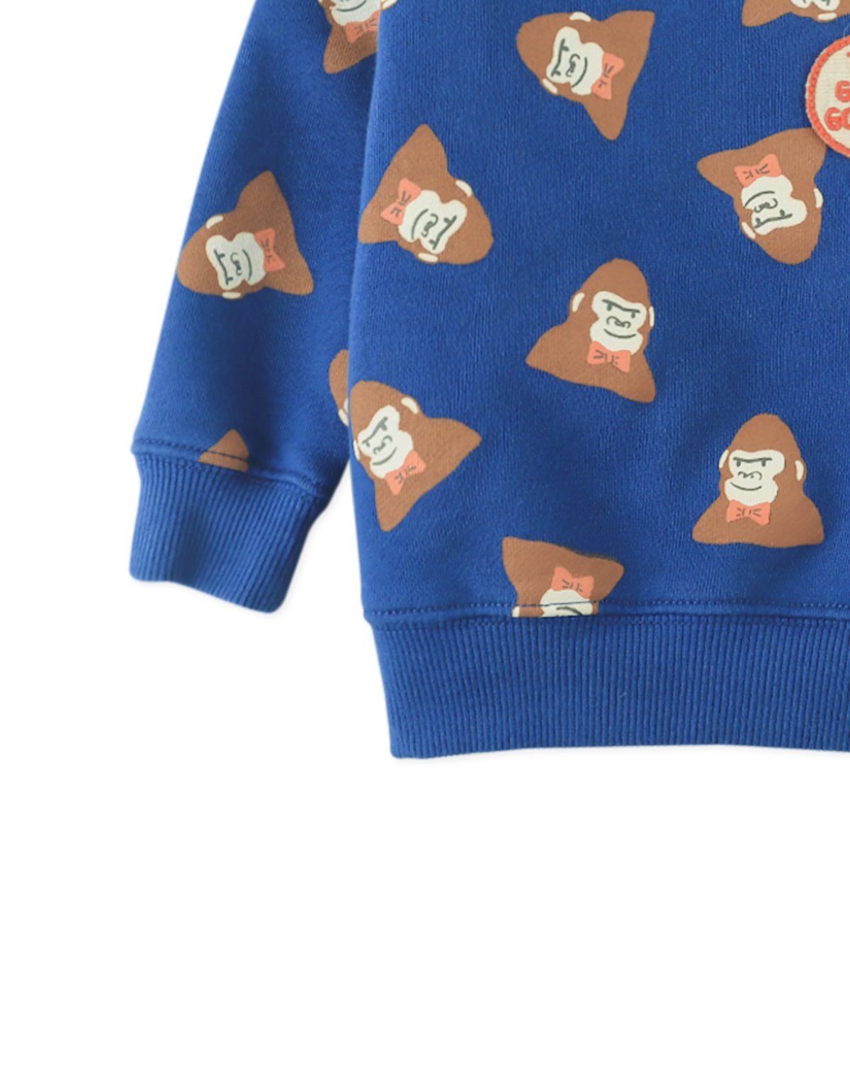 Get ready to roar with the Baby Cary Sweatshirt in deep blue, featuring our Kong print and a bold embroidered patch.