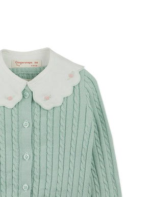 BABY EIRA LONG SLEEVES CARDIGAN GREEN WITH EMBROIDERED COLLAR DETAIL