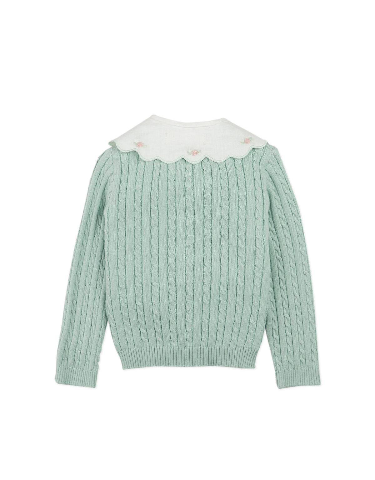 Spark your little one’s imagination with the Baby Eira Long Sleeves Cardigan in subtle green hue, featuring an embroidered collar detail for an extra vintage chic appeal!