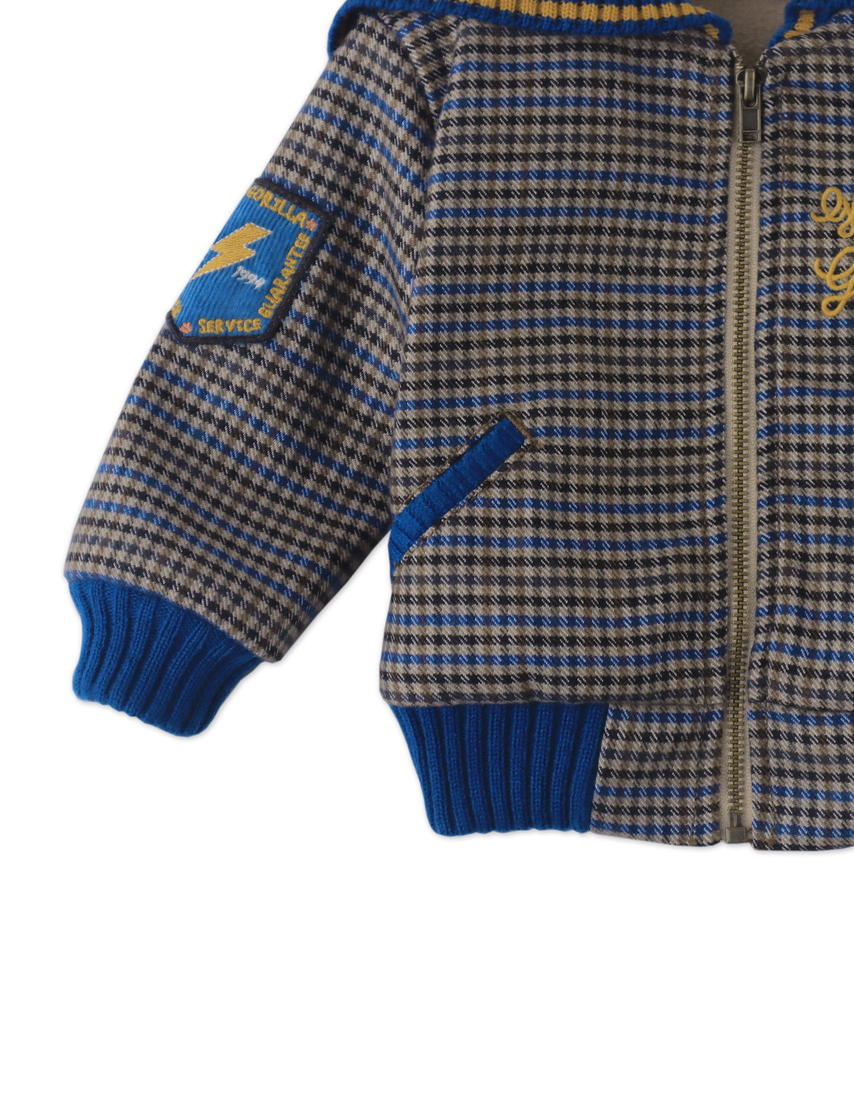 The Fred Sailor Jacket in our Snyder Houndstooth combines playful embroidered patches, a knitted yarn collar, and direct embroidery for a stylish, nautical-inspired look that’s perfect for your little one’s everyday adventures.
