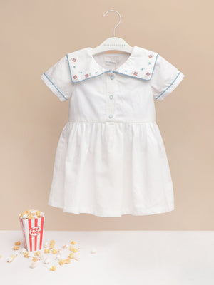 BABY BIANCA DRESS WITH EMBROIDERY ON COLLAR