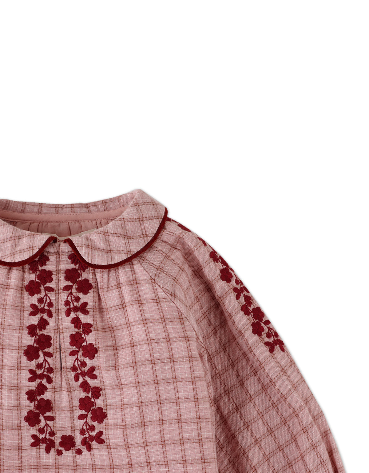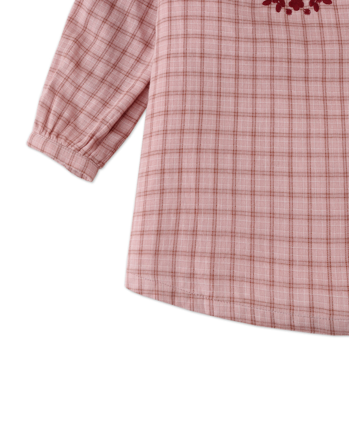 BABY GIRLS CHECKERED DRESS WITH EMBROIDERY DETAILS