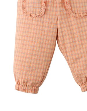 BABY GIRLS CHECKERED JUMPSUIT WITH SMALL ORANGE EMBRO PATCH
