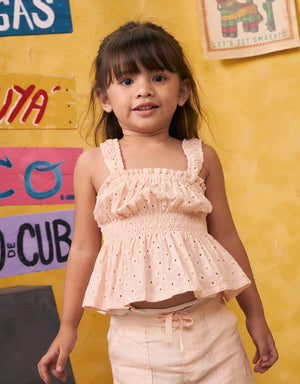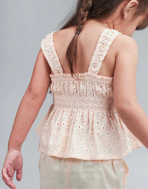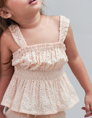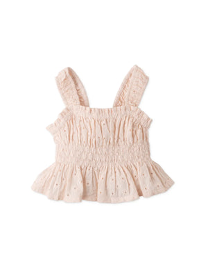 BABY GIRLS COTTON EYELET SMOCKED BLOUSE