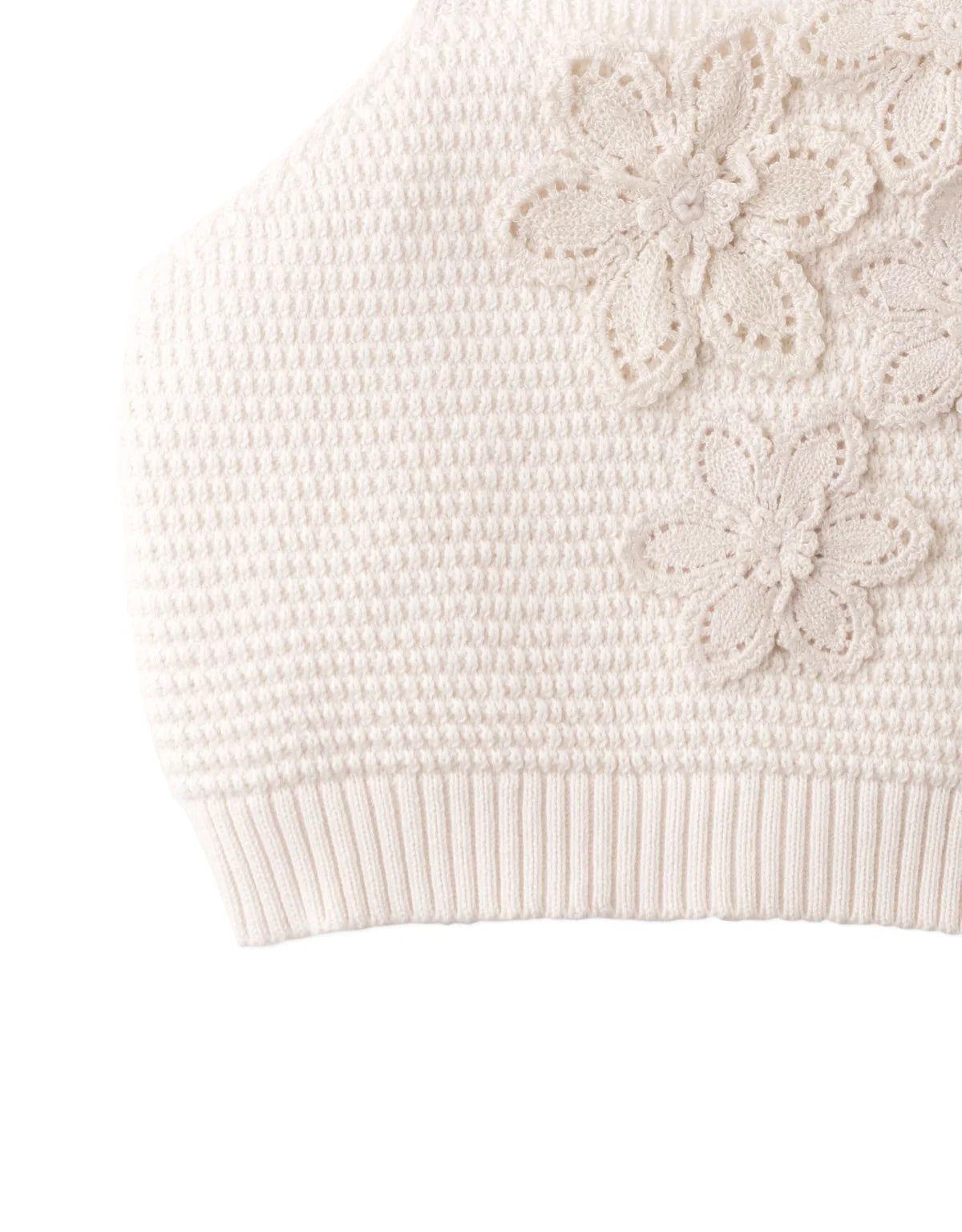 BABY GIRLS CROCHET HALTER TOP WITH FLOWER APPLIQUE