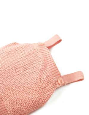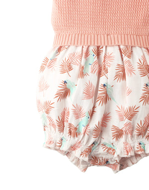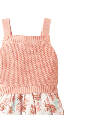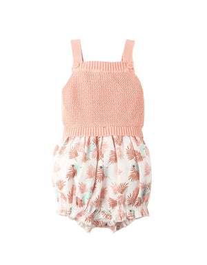 BABY GIRLS CROCHET-LIKE KNIT AND PRINTED COTTON PLAYSUIT