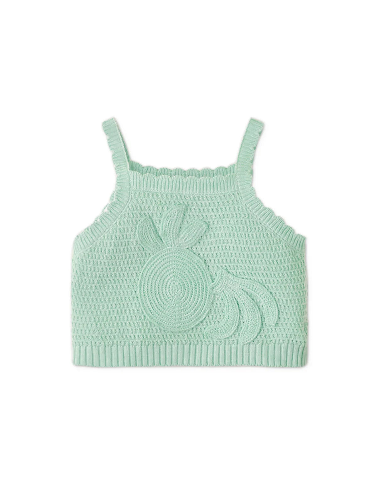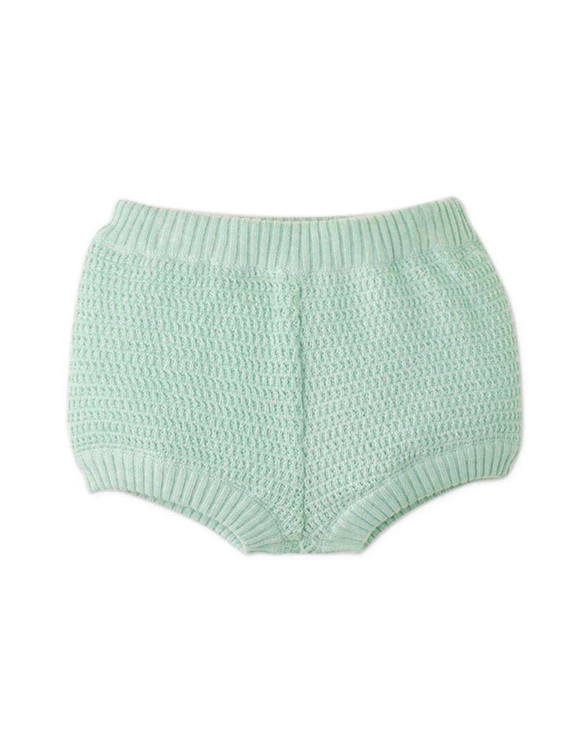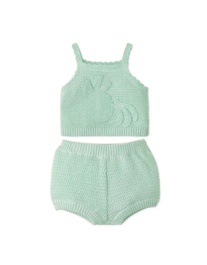 BABY GIRLS CROCHET-LIKE KNIT SHORTS SET WITH CROCHET FRUIT APPLIQUE