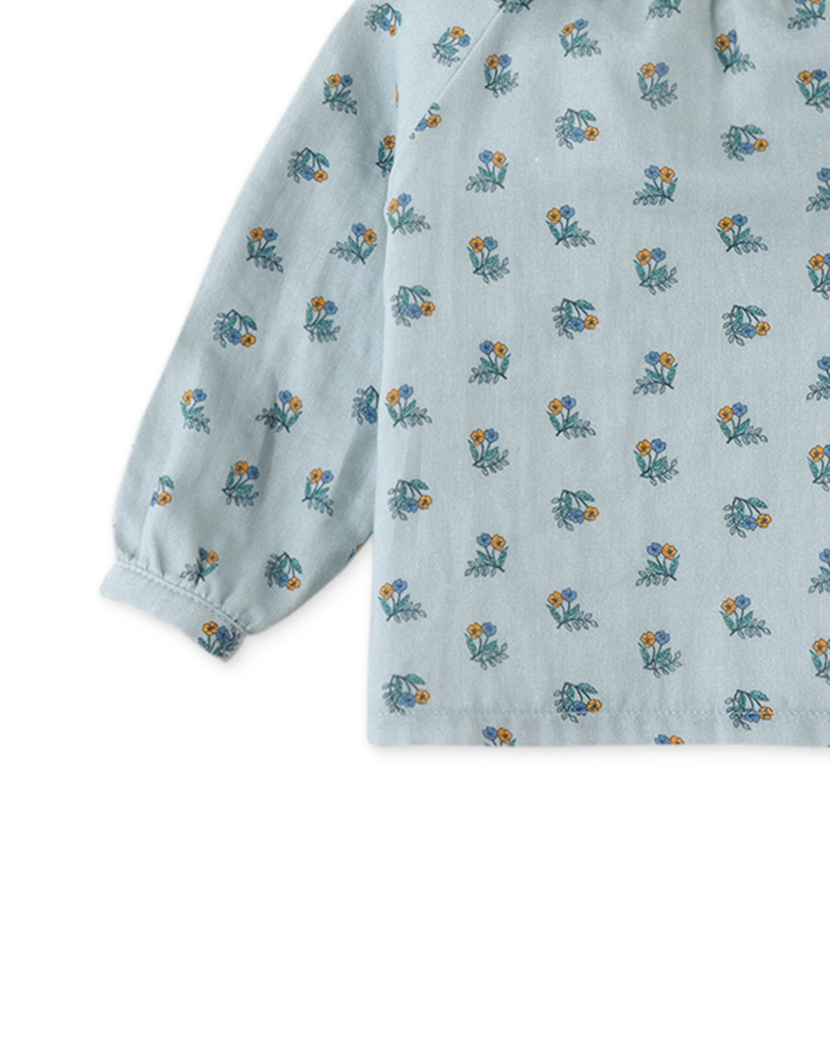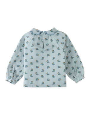 BABY GIRLS FLORAL BLOUSE WITH SCALLOP COLLAR AND CONTRAST EMBRO