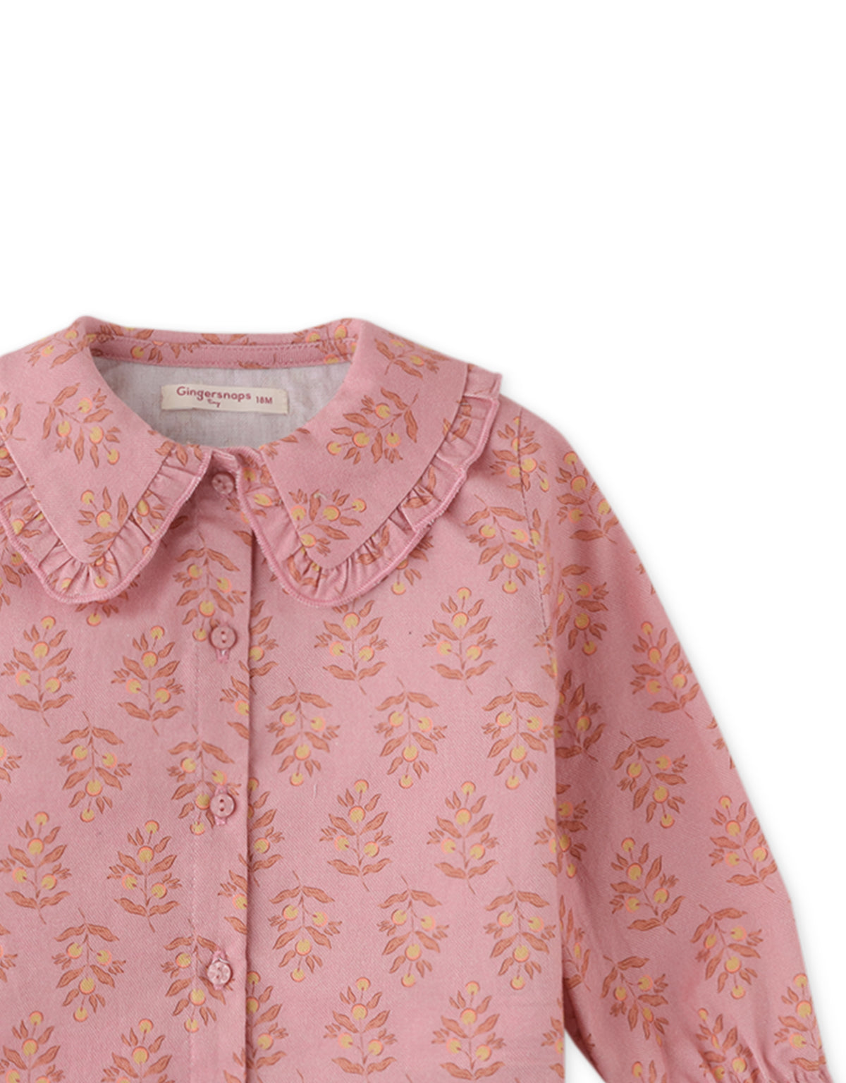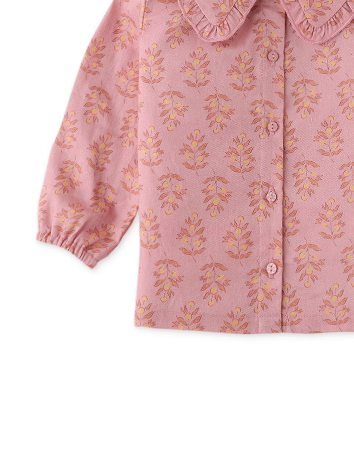 BABY GIRLS FLORAL PRINT BLOUSE WITH EMBROIDERY RUFFLES ON COLLAR