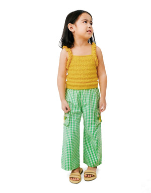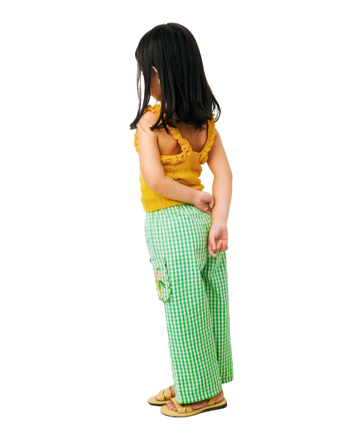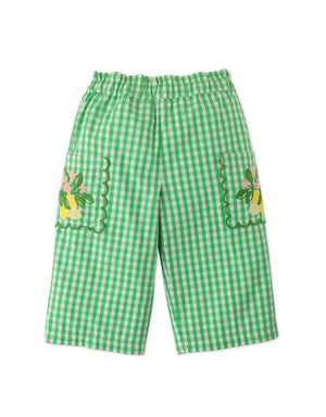 BABY GIRLS GINGHAM PANTS WITH LEMON EMBRO ON POCKETS