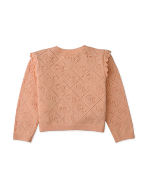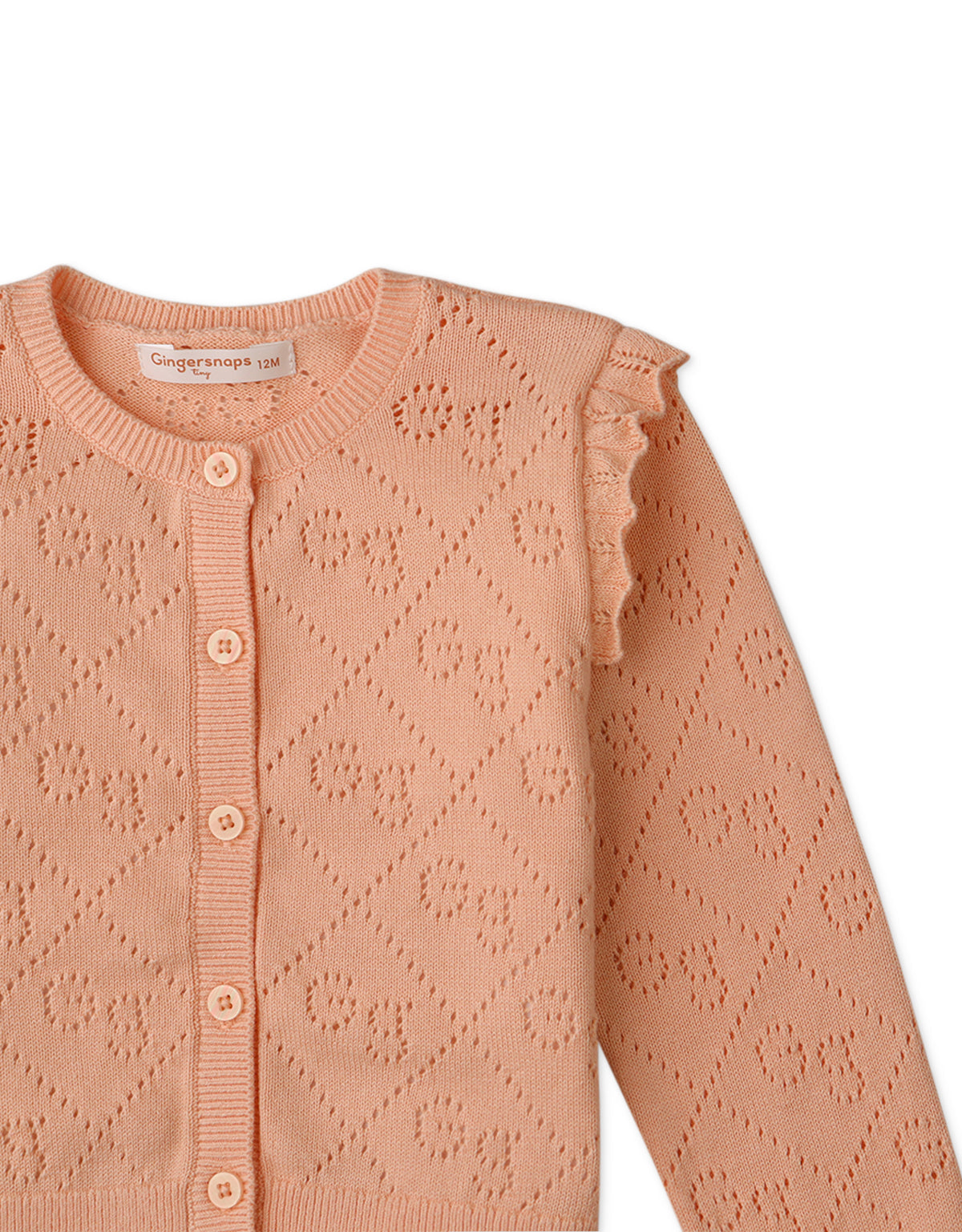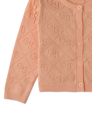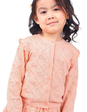 Your little sweetheart will stay cozy and cute in this adorable peach knit cardigan!