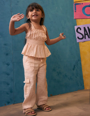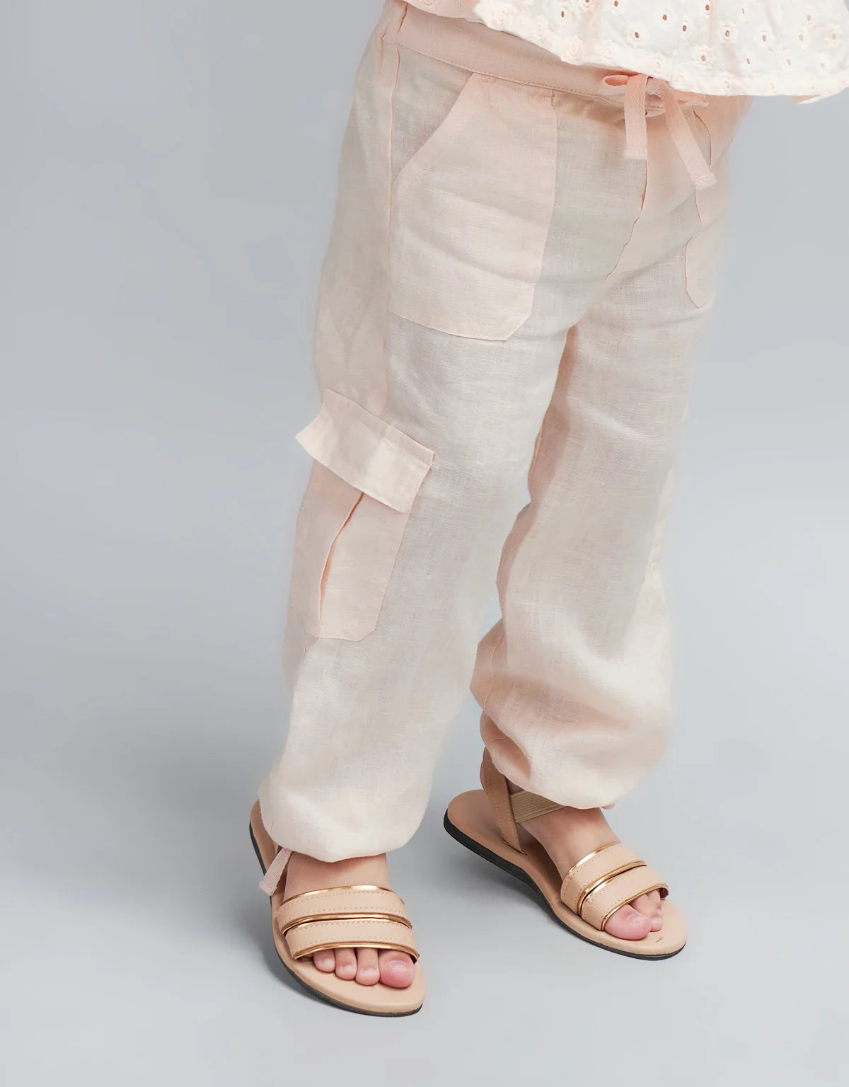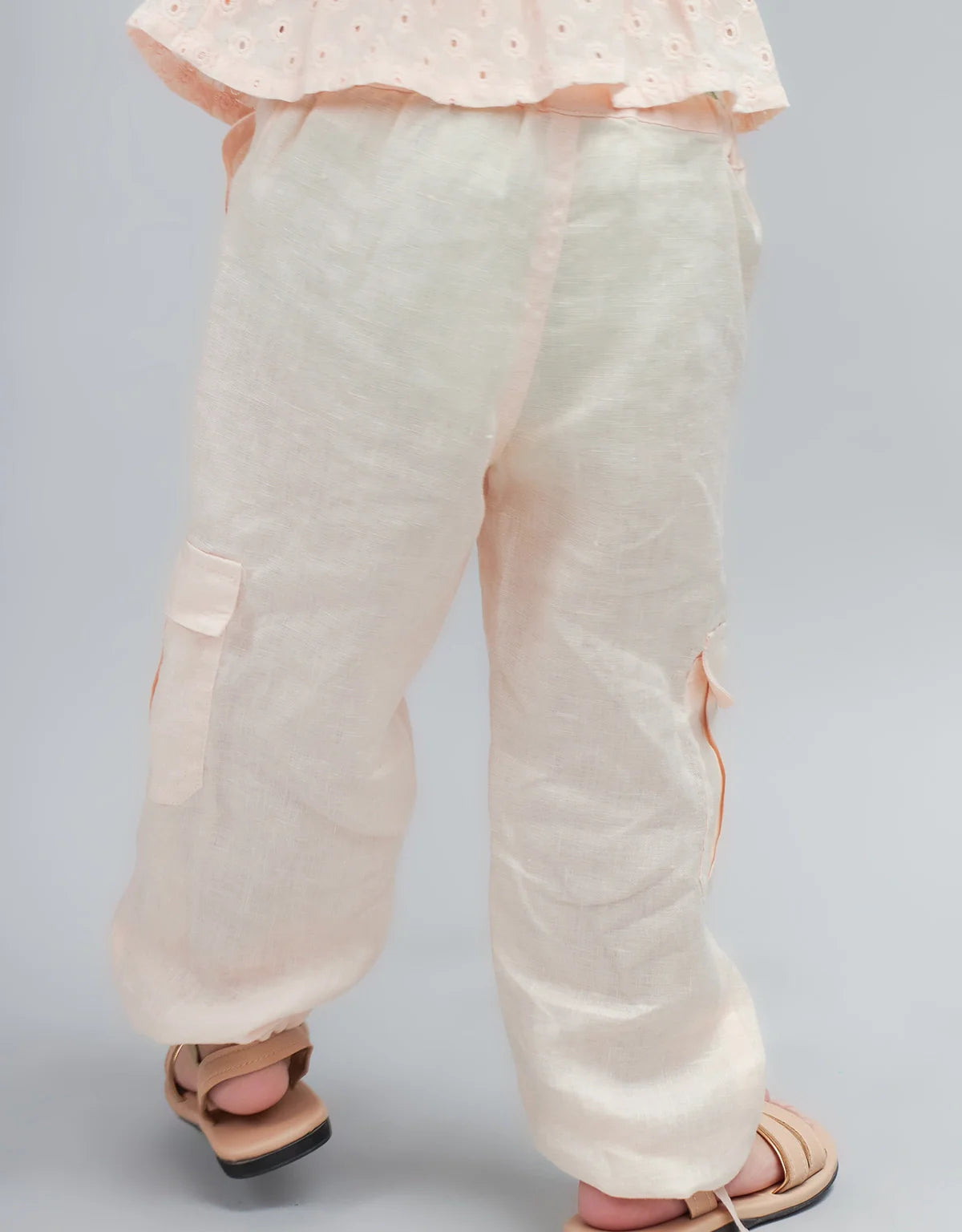 BABY GIRLS LINEN CARGO PANTS WITH TIES