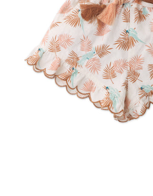 BABY GIRLS PARROT PRINT SHORTS WITH SCALLOP EMBRO