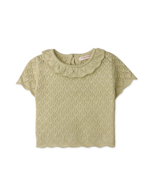 BABY GIRLS POINTELLE KNITTED BLOUSE WITH RUFFLES