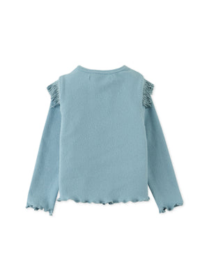 BABY GIRLS RIBBED TOP WITH FRINGE DETAILS AND LETTUCE HEM