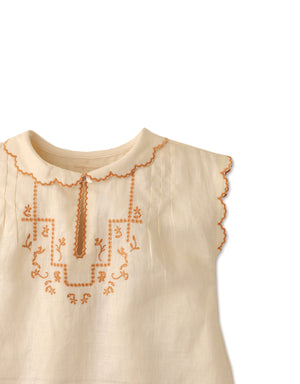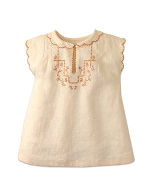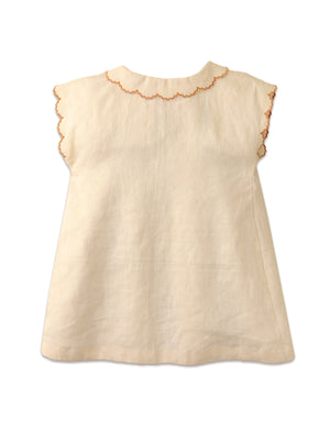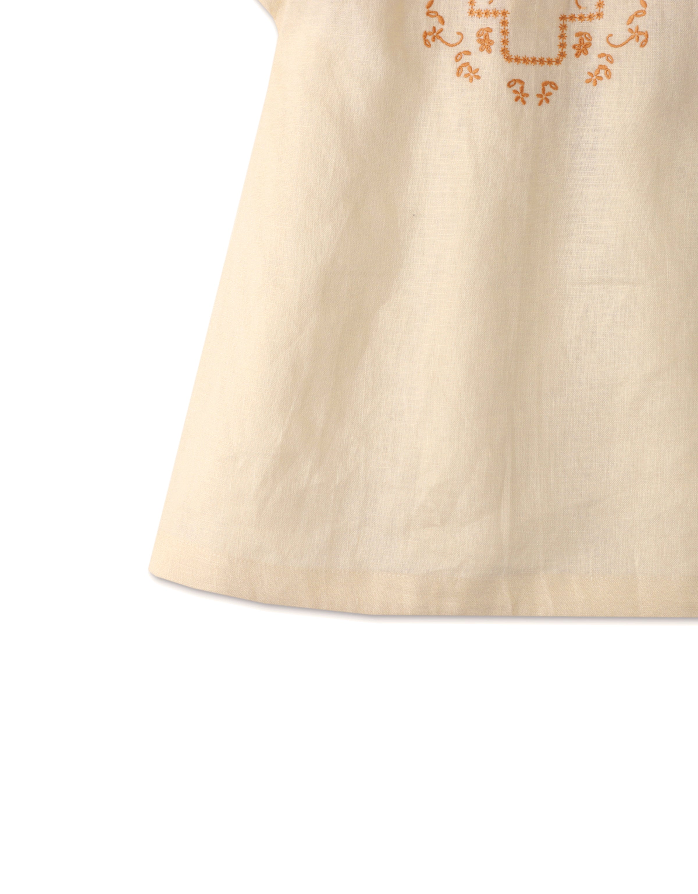 Feel like a princess in this linen shift dress, adorned with a delicate collar and beautiful embroidery details!