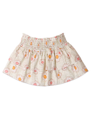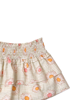 Twirl like a fairy with this daisy-printed poplin skirt with adorable smocking details on its waistband!
