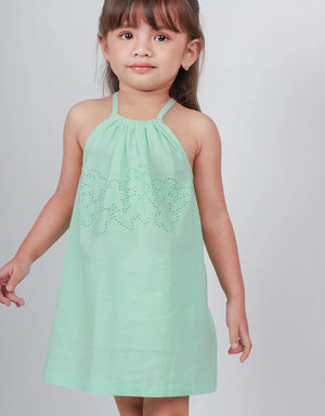 BABY GIRLS SWING DRESS WITH CUT OUT LACE DETAIL