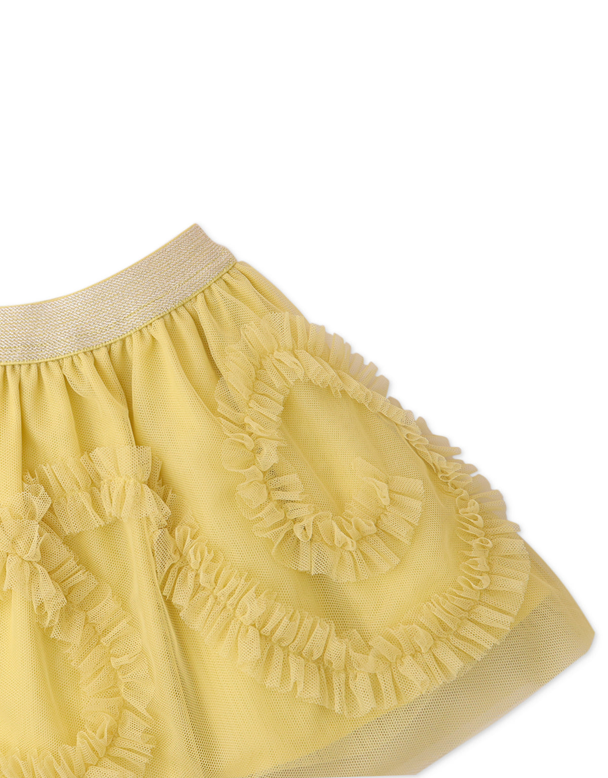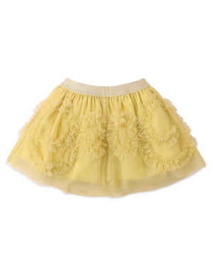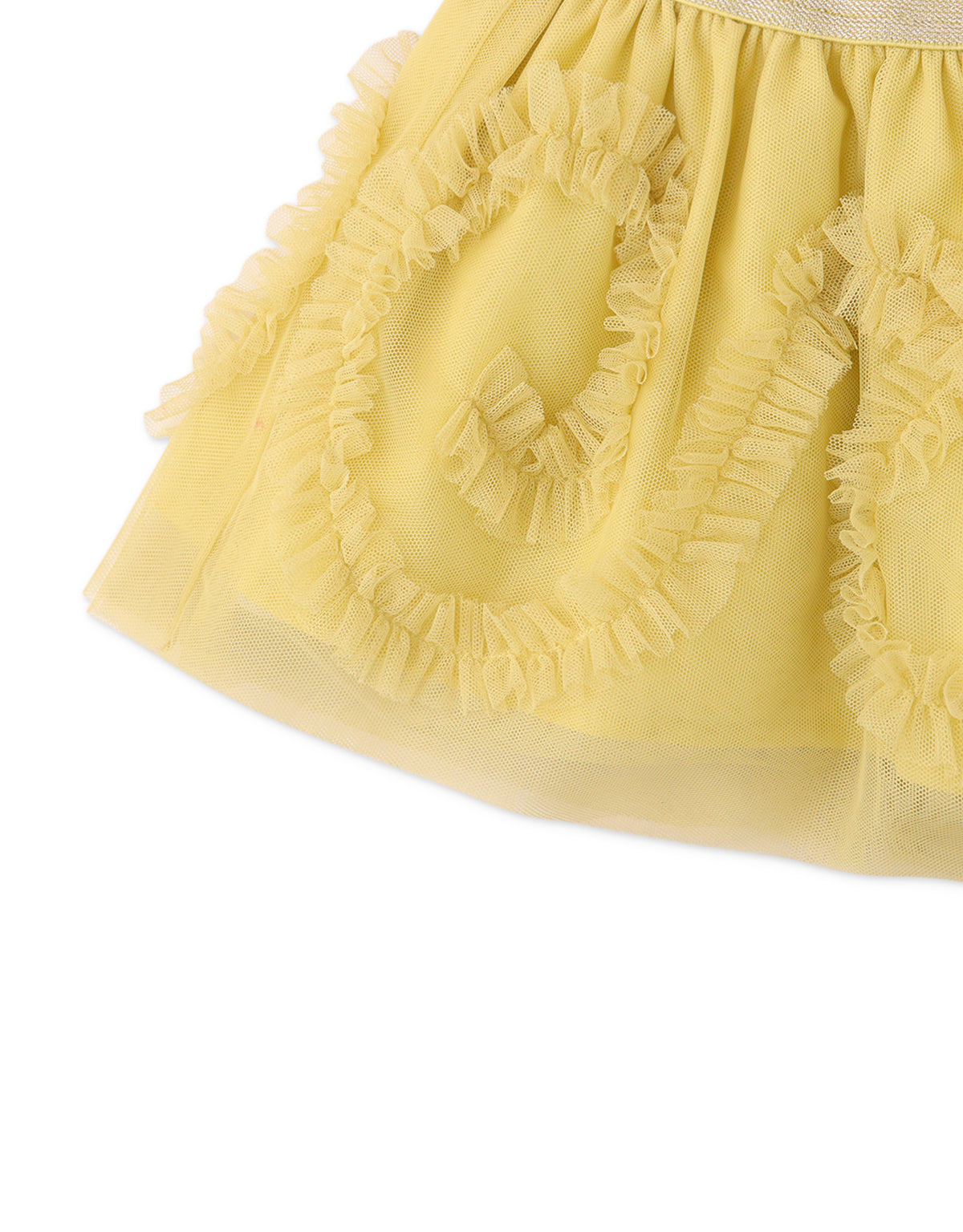 Twirl like a fairy in this magical yellow tulle skirt with enchanting swirl ruffle details.