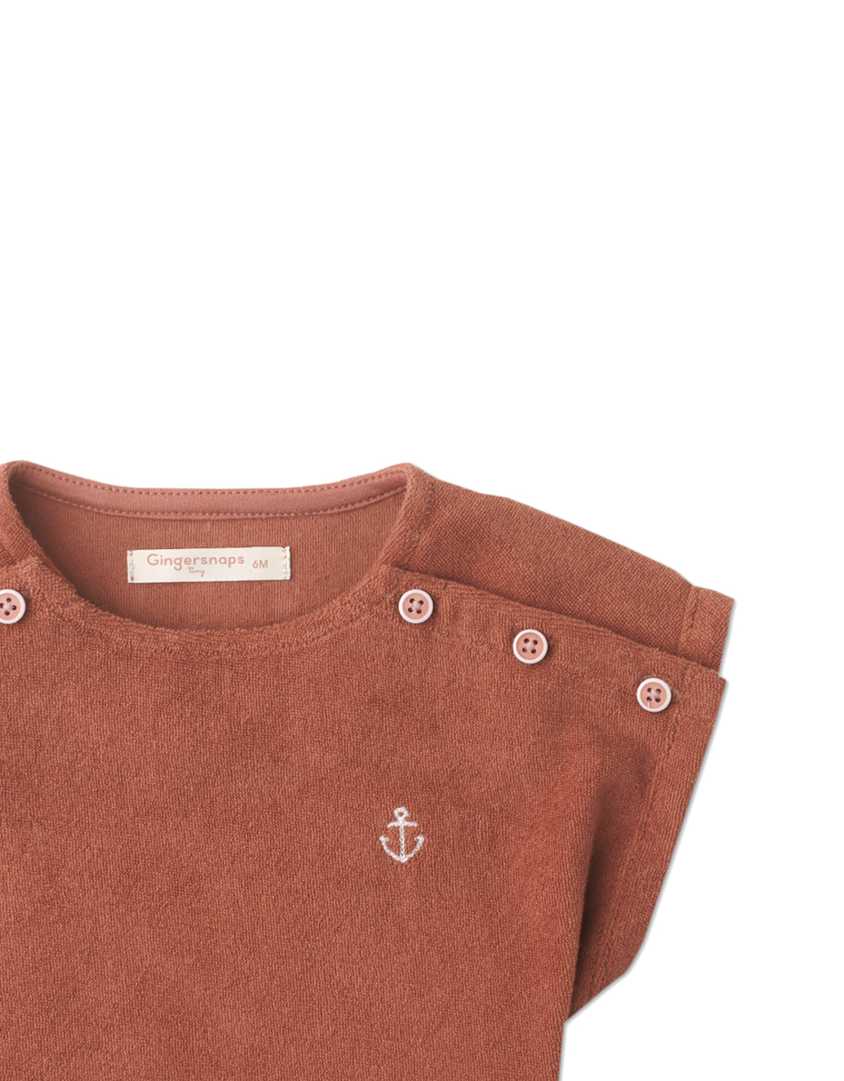 BABY GIRLS TERRY TOWEL BOAT NECK TOP WITH ANCHOR EMBROIDERY DETAIL
