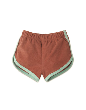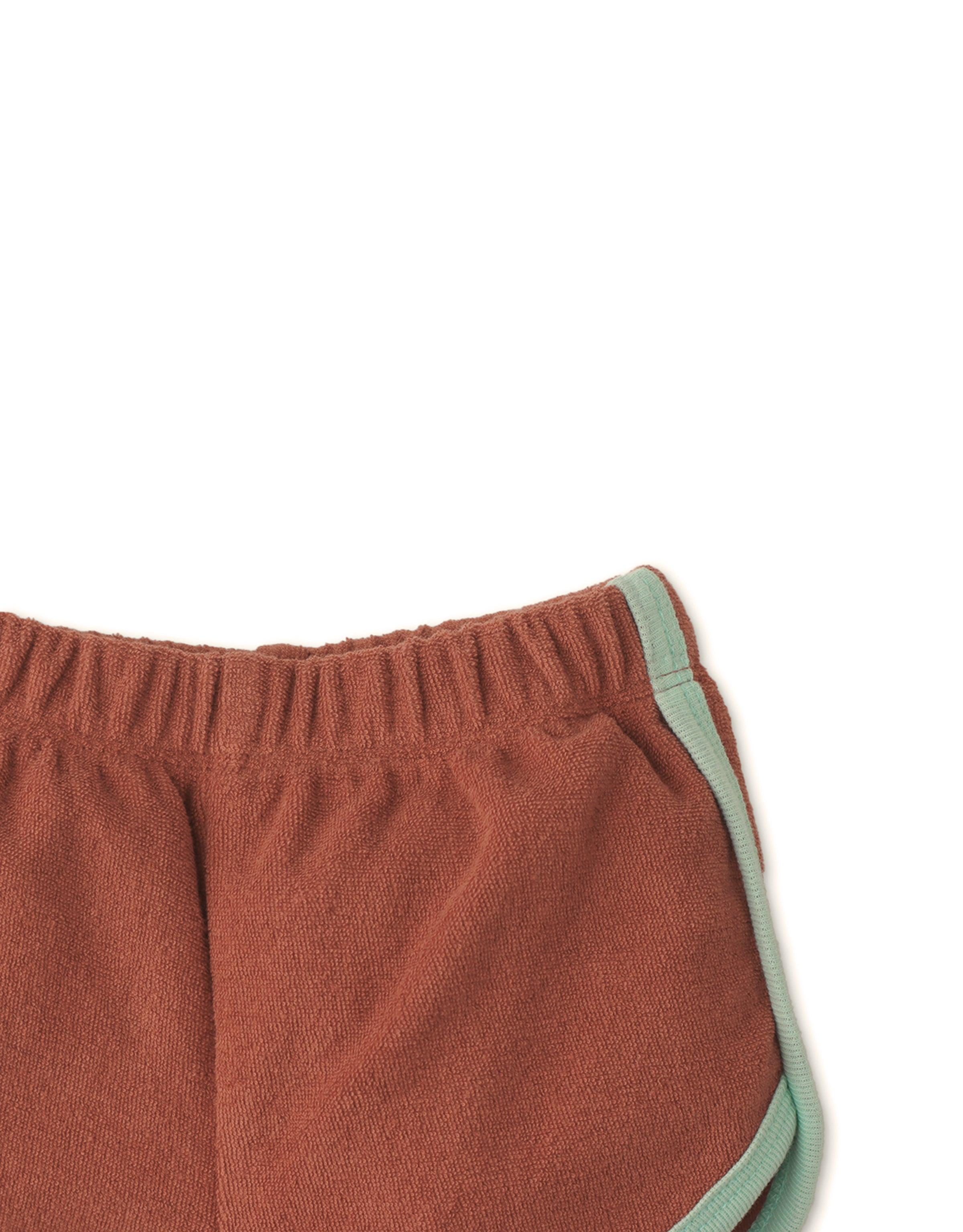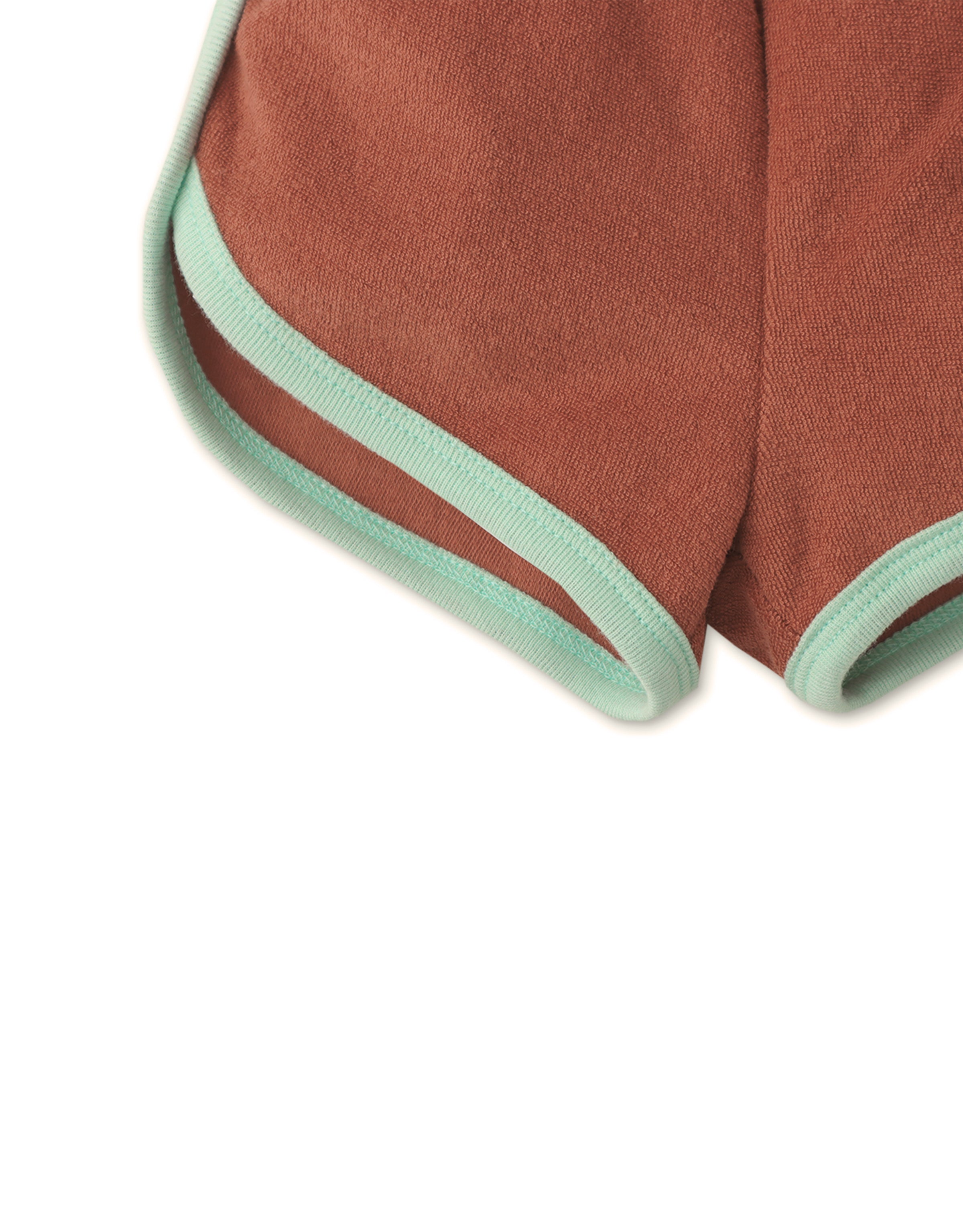 Dress your girl in the cutest bottoms with our towel-terry dolphin shorts in the warmest brown color.