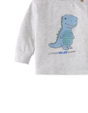 Make a roaring statement with our Baby Kael Long Sleeves T-Shirt in gray melange, featuring our Extraordinary Dino print.