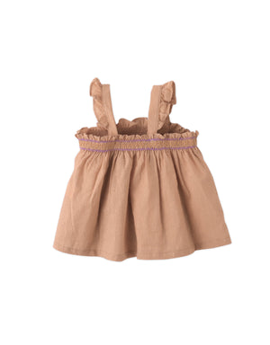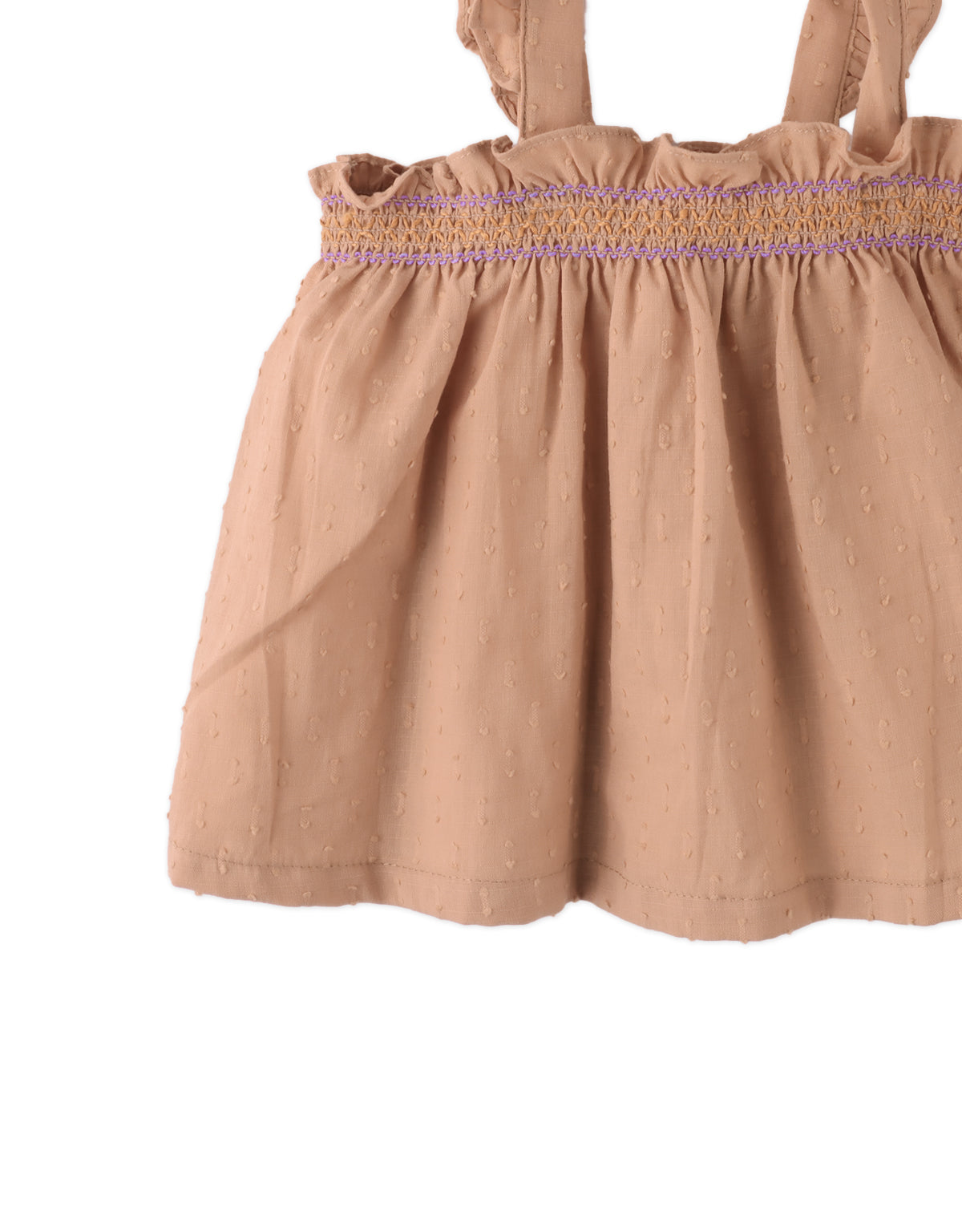 BABY KAYA STRAPPY TEXTURED COTTON TUNIC BLOUSE WITH SMOCKING DETAILS