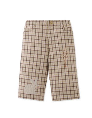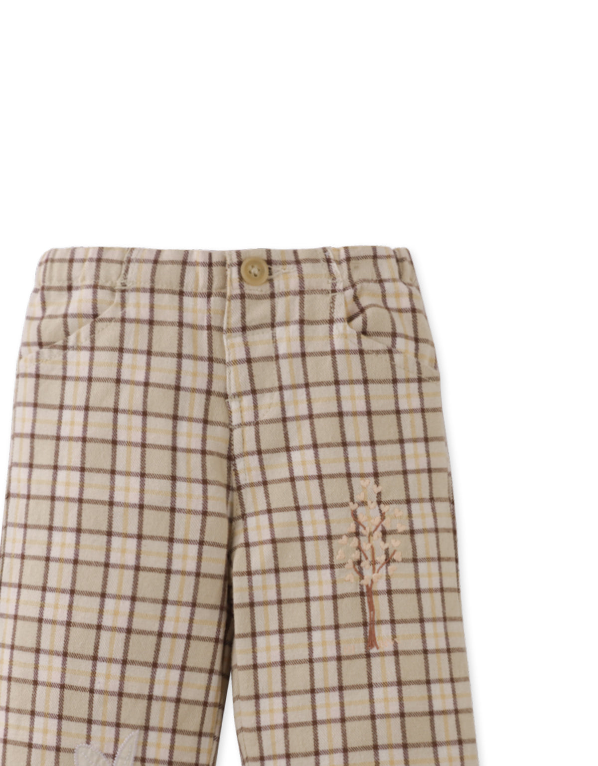 Bring a touch of woodland whimsy to your child's wardrobe with the Baby Keziah Trousers in Carter Plaid, whose bunny appliqué and tree embroidery evoke a cozy, nature-inspired aesthetic.