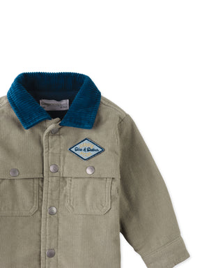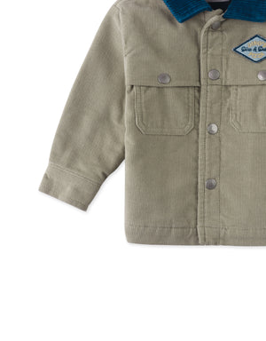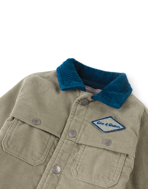 BABY LACHLAN WORKER'S JACKET KHAKI WITH EMBROIDERED PATCHES AND BACK APPLIQUE